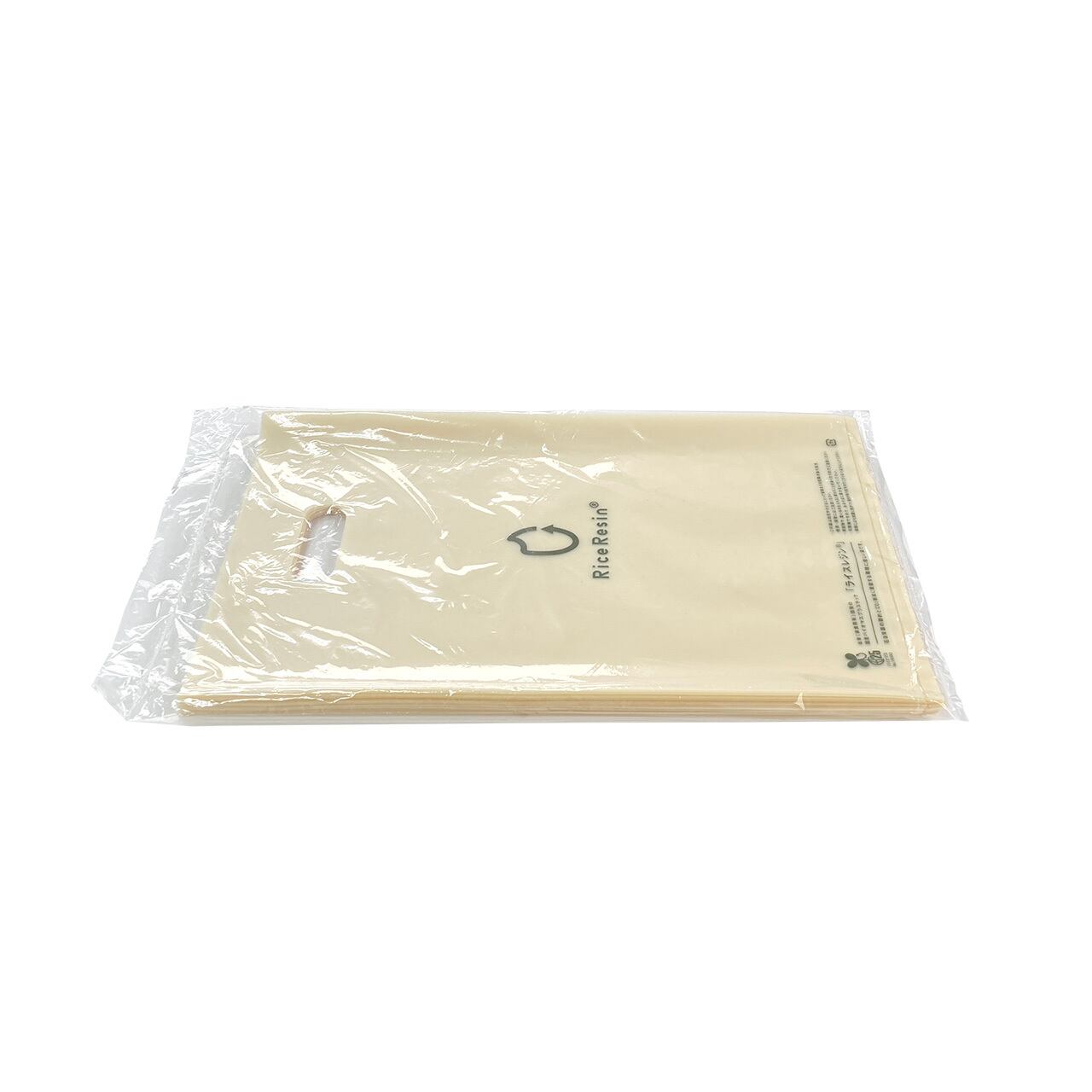古米や破砕米など食用に適さないお米を原料とする国産バイオマスプラスチック「ライスレジン®」製のショッパーです。